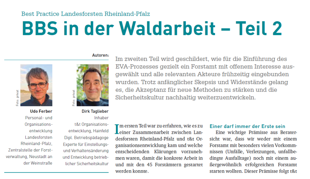 Der zweite Artikel, verfasst mit Udo Ferber, “Best Practice Landesforsten Rheinland-Pfalz — BBS in der Waldarbeit — Teil 2” steht HIER zum Download bereit.
